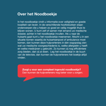 Het Noodboekje is niet alleen een handig hulpmiddel voor het organiseren van uw medische gegevens, maar het helpt ook bij het bevorderen van zelfzorg, het verhogen van uw veiligheid en het ondersteunen van de zorgverlening wanneer dat nodig is. Of het nu gaat om dagelijkse gezondheidsmonitoring, het maken van weloverwogen keuzes over zorg, of het verstrekken van cruciale informatie aan hulpverleners, Het Noodboekje is uw betrouwbare partner voor een veilig en zelfstandig leven thuis.