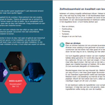 - Hulpmiddelen en Zelfredzaamheid: Informatie over de hulpmiddelen die u kunt gebruiken voor meer zelfstandigheid in uw dagelijks leven.